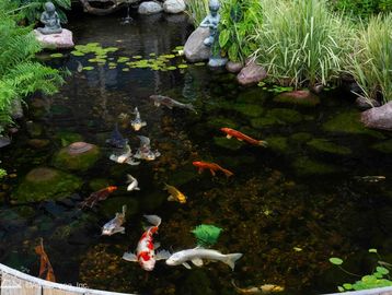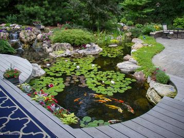 Ecosystem ponds are one of the most rewarding features you can add to your outdoor living experience. Imagine stepping outside your home into your very own backyard oasis, complete with a beautiful water garden or koi pond. Sit back, relax, and enjoy the soothing sights and sounds of running water and beautiful koi fish. Feel the cares of the world slip away as you enjoy your personal backyard pond!